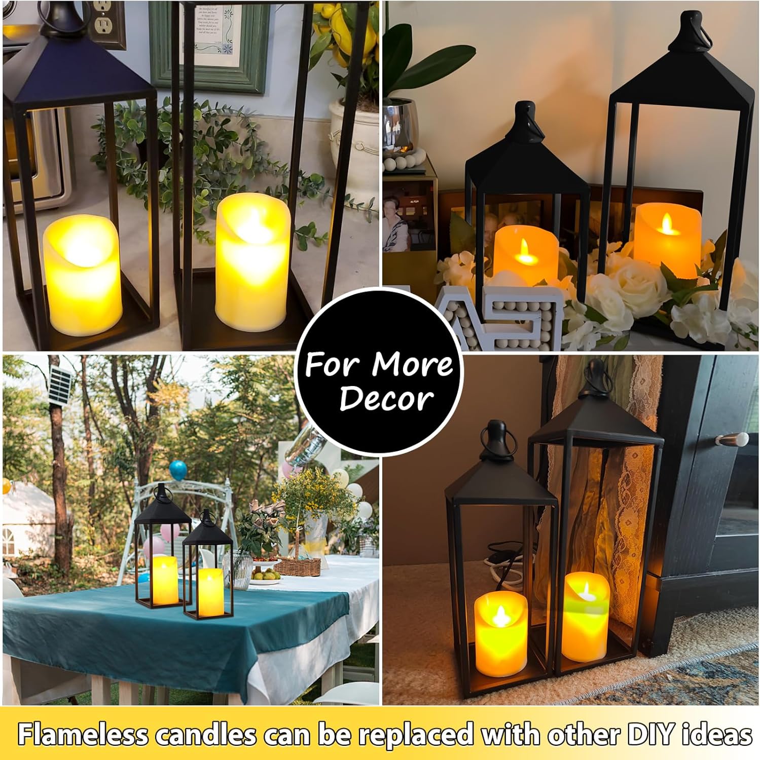 Crafted with high-quality metal, these lanterns exude a rustic yet modern farmhouse charm that will complement any interior or exterior style. Each lantern comes with a flameless candle, providing a warm and inviting glow without the worry of open flames.